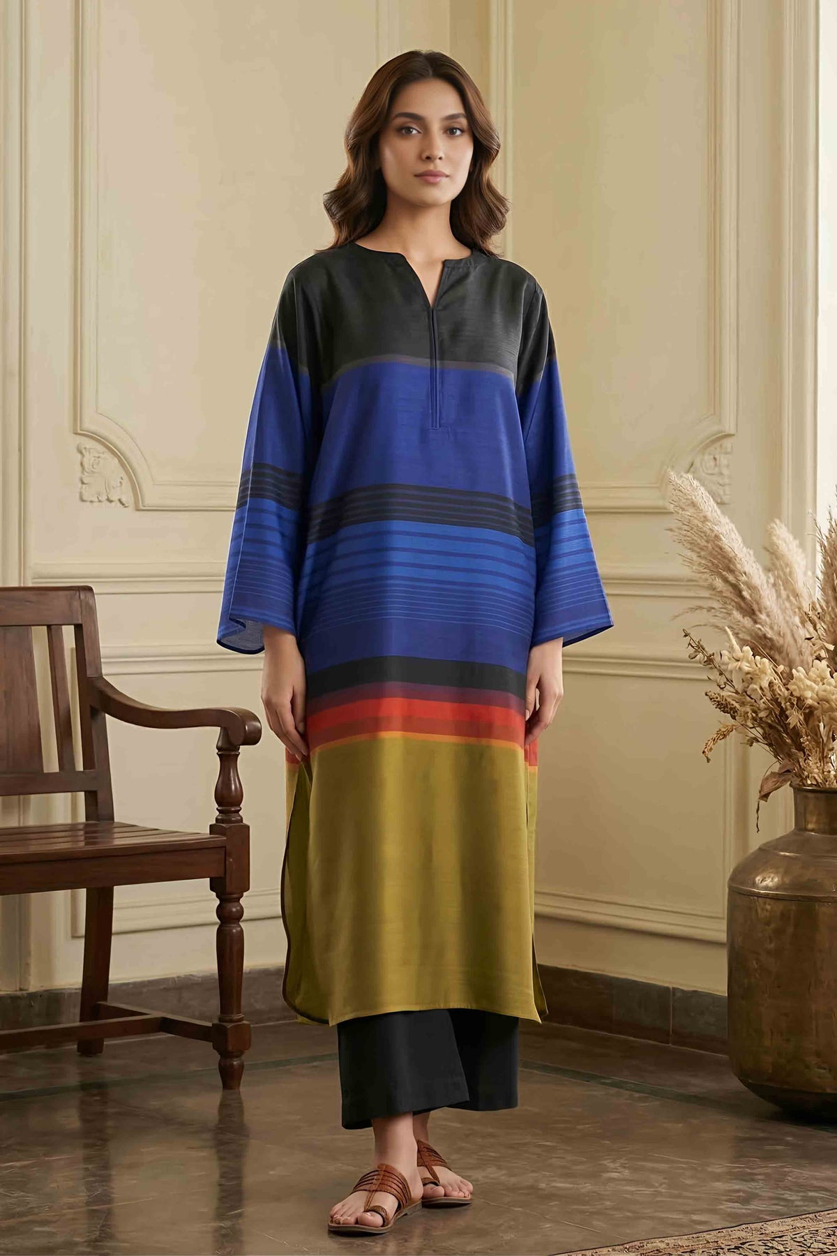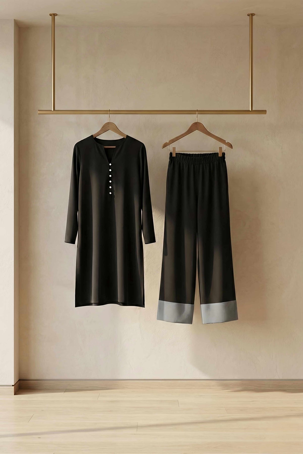 This Relax Fitting Cotton Satin Blend Long Kurta Pakistani Coord Set is undoubtedly the perfect addition to your wardrobe. Moreover, this Pakistani Suit for Women features hand tassel and mirror work detailing on the neck, enhancing its traditional appeal. Ideal for festive occasions or casual wear, this set effortlessly combines comfort with style. Additionally, the cotton satin blend fabric offers a luxurious feel, making it perfect for all-day wear.